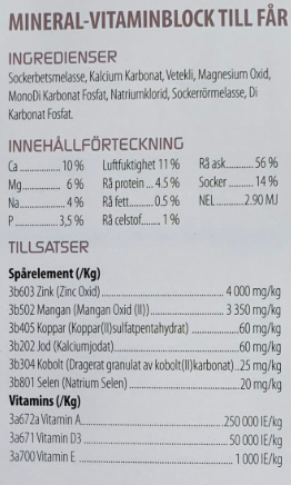 Mineral-vitaminblock till får.