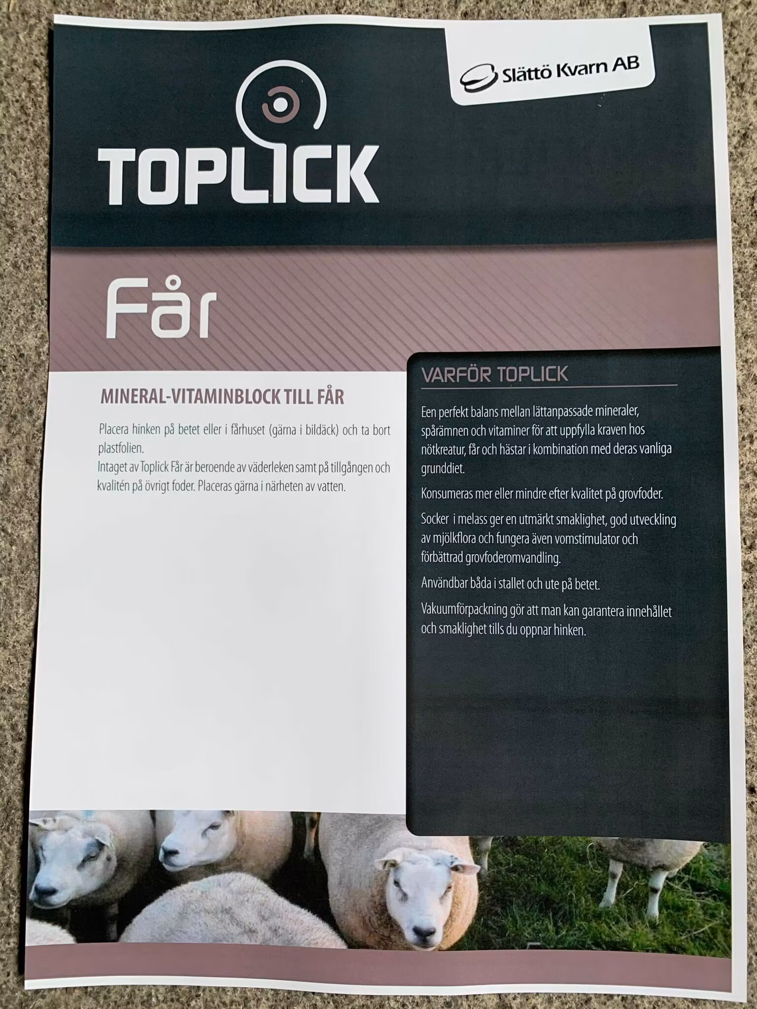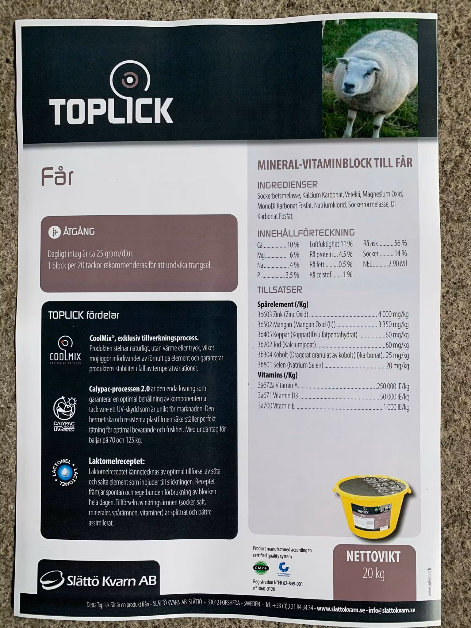 Toplick mineral-vitamin hink Får - 10 st 3 700 kr Helpall levereras direkt hem till dig. Lägg i varukorg Artikelnummer: 118 Information Recensioner Mineral-vitaminblock till får.Helpall levereras direkt hem till dig.Vaccumpackade med en hållbarhet på 12 månader.Nettovikt: 20kg